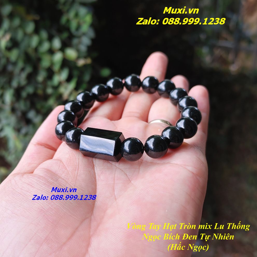 VÒNG ĐEO TAY MIX LU THỐNG NGỌC BÍCH ĐEN TỰ NHIÊN