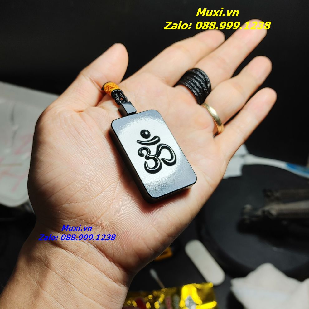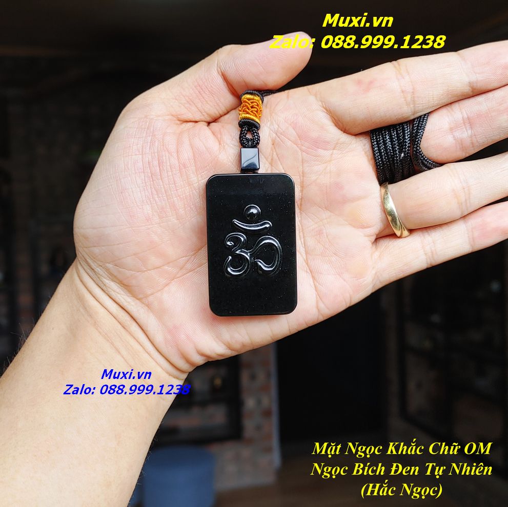 Bộ sản phẩm gồm: 1 mặt dây chuyền khắc hình chữ OM chất liêu ngọc bích đen tự nhiên, dây đeo, túi nhung đỏ, hộp đựng sang trọng.