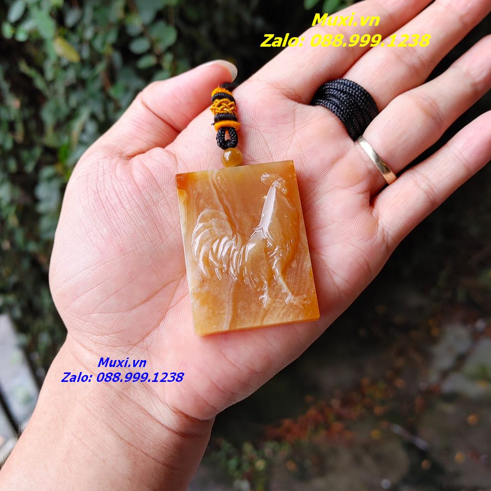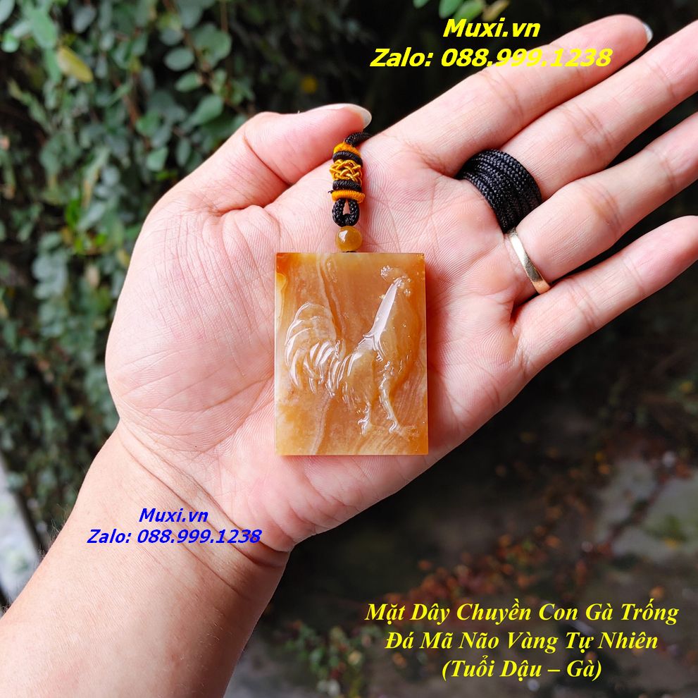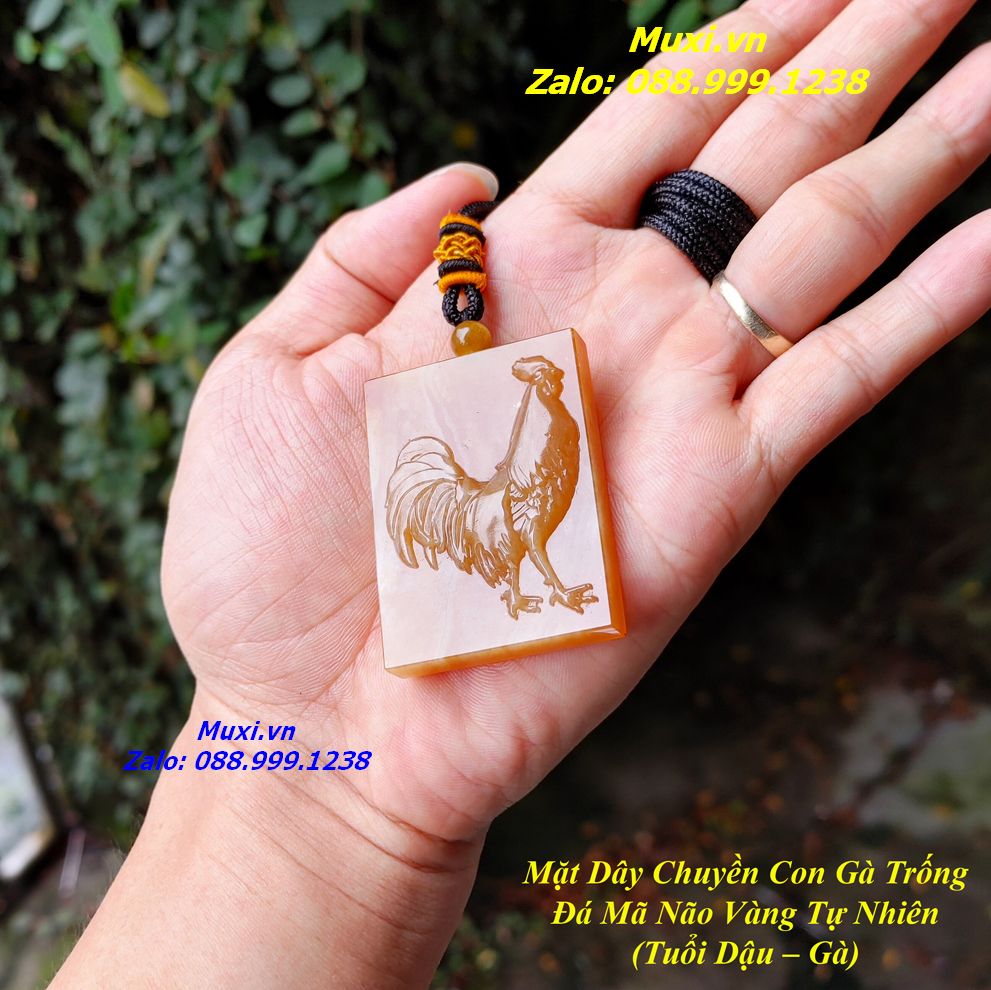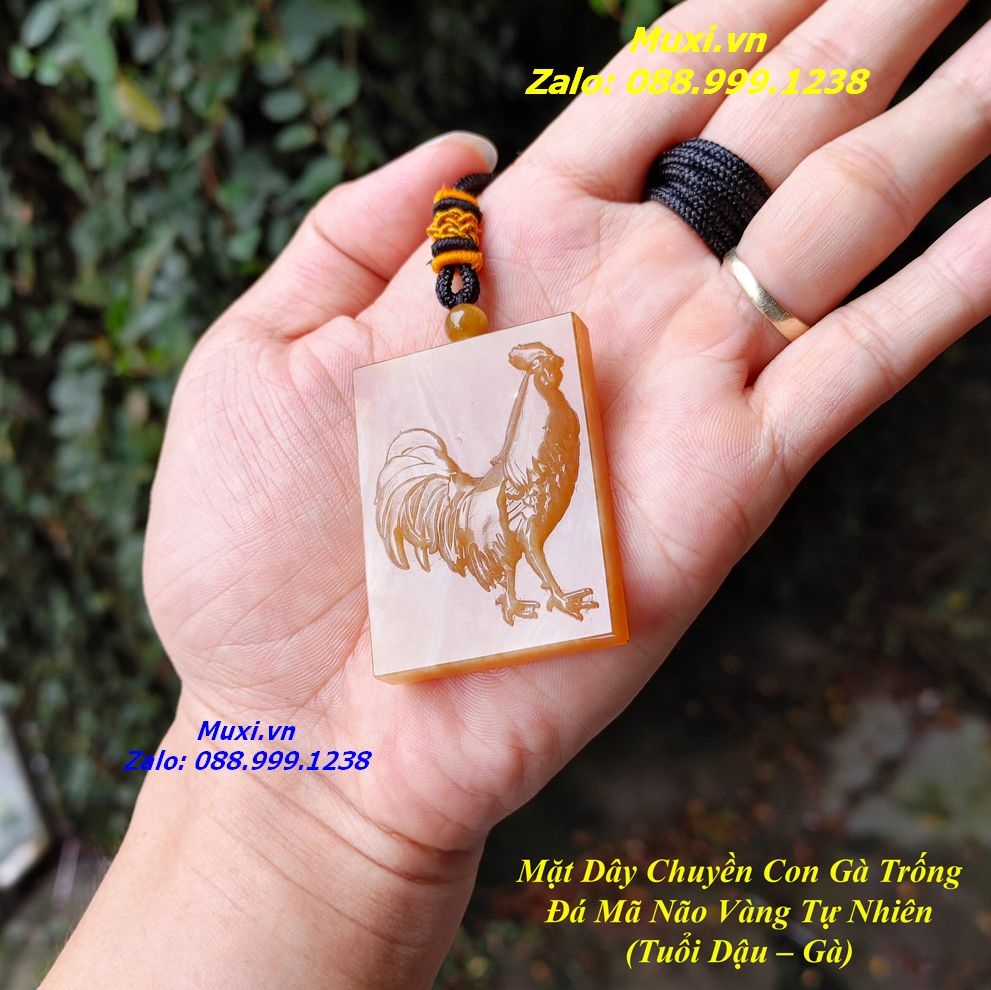 Bộ sản phẩm gồm: 1 mặt dây chuyền vô sự bài mã não đỏ cam chạm khắc hình con gà nguồn gốc Đắk Lắk, dây đeo, túi nhung đỏ, hộp đựng sang trọng.