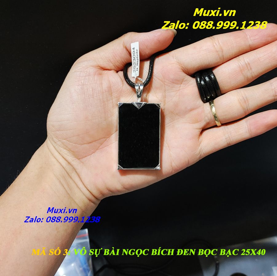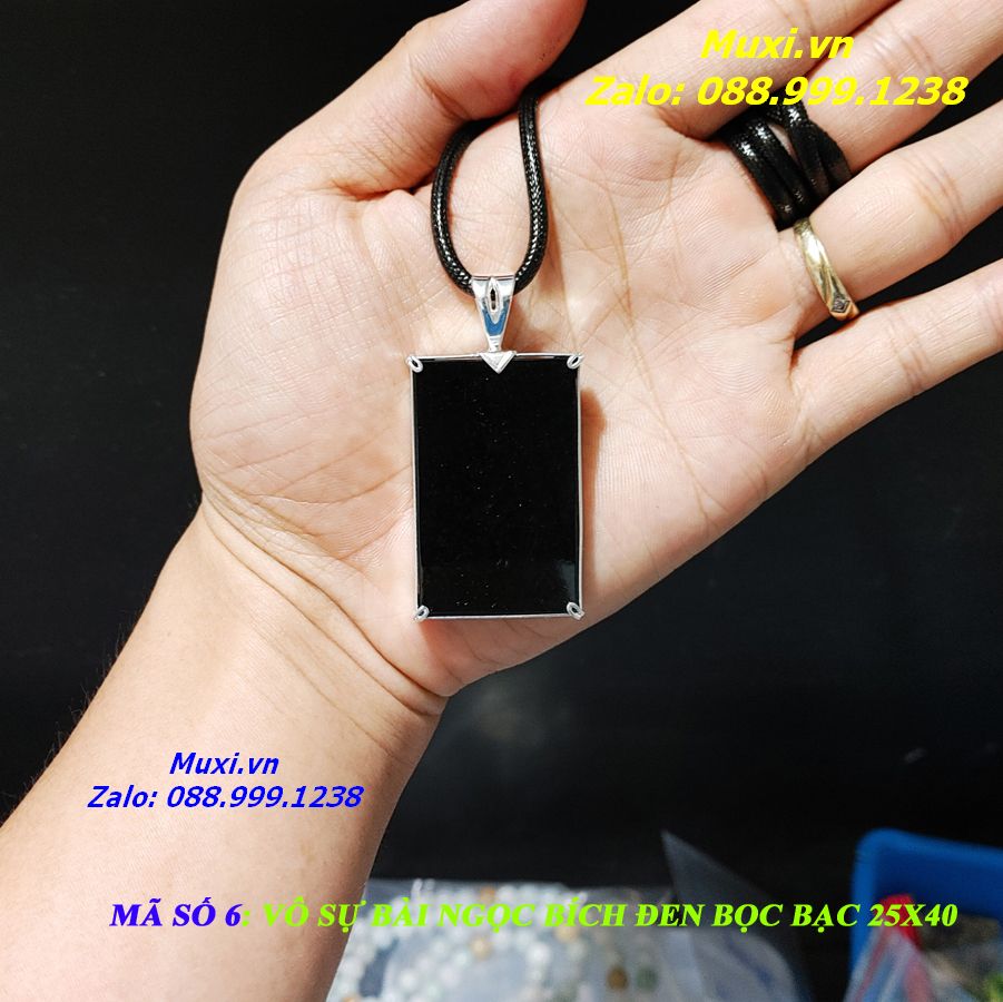 Bộ sản phẩm gồm: 1 mặt dây chuyền VÔ SỰ BÀI được làm từ NGỌC BÍCH ĐEN bọc bạc, dây đeo, túi nhung đỏ, hộp đựng sang trọng.