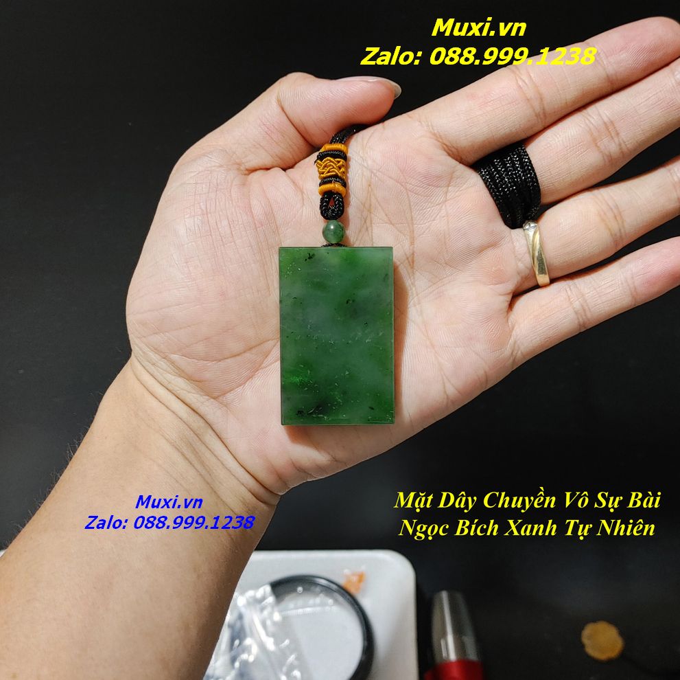 Bộ sản phẩm gồm: 1 mặt dây chuyền vô sự bài ngọc bích xanh tự nhiên, dây đeo, túi nhung đỏ, hộp đựng sang trọng.