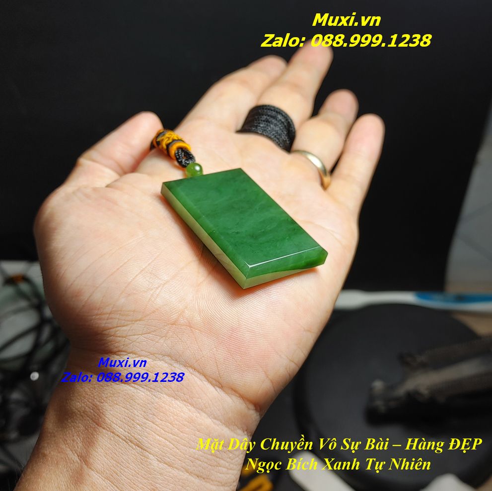 Bộ sản phẩm gồm: 1 mặt dây chuyền vô sự bài ngọc bích xanh tự nhiên hàng đẹp cho nam, dây đeo, túi nhung đỏ, hộp đựng sang trọng.