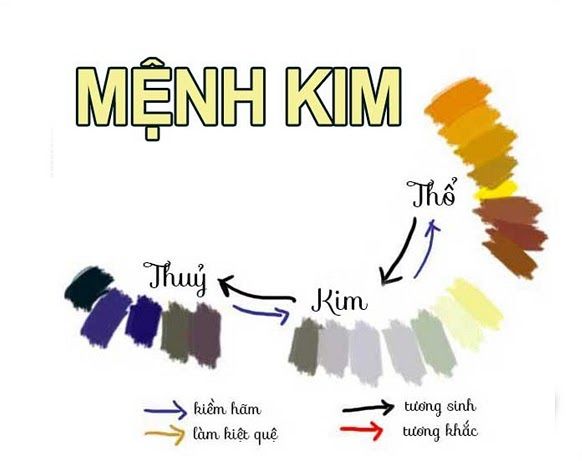 Không nên chọn màu sắc hành hỏa và hành mộc vì hỏa khắc kim và kim khắc mộc, vì thế bạn hãy tránh mặt có màu tím, hồng, đỏ, xanh lục... và các màu sắc nổi bật, bởi vì mệnh kim là màu trắng, nếu pha với các màu quá sặc sỡ sẽ làm thay đổi sắc trắng, khiến cho sắc trắng bị lu mờ.
