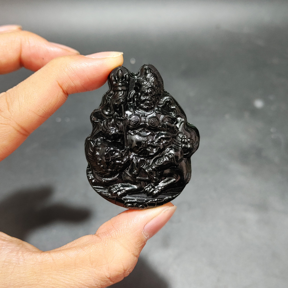 Bộ sản phẩm gồm: 1 mặt dây chuyền Hoàng Thần Tài chất liêu ngọc bích đen tự nhiên, dây đeo, túi nhung đỏ, hộp đựng sang trọng.