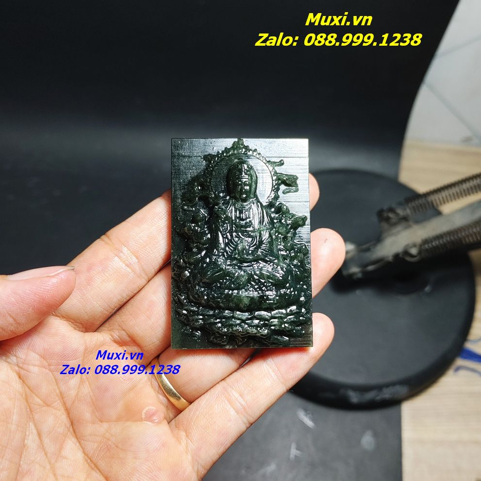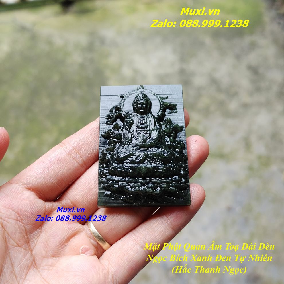 Bộ sản phẩm gồm: 1 mặt dây chuyền QUAN THẾ ÂM BỒ TÁT được làm từ NGỌC BÍCH ĐEN THIÊN NHIÊN, dây đeo, túi nhung đỏ, hộp đựng sang trọng.