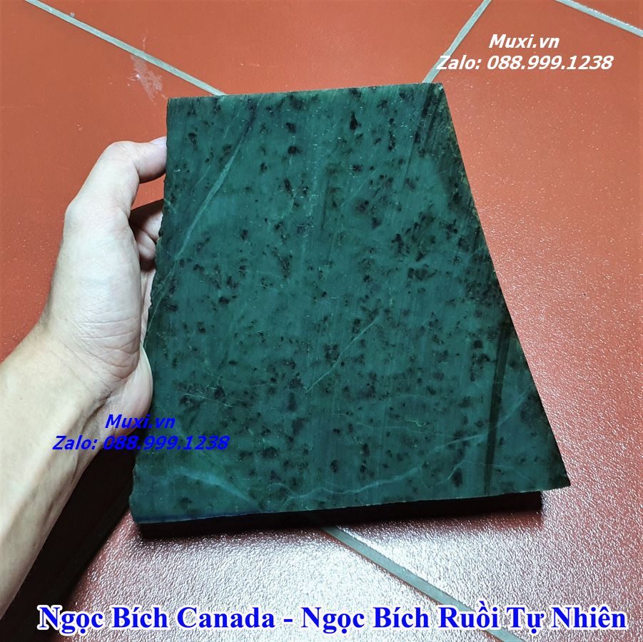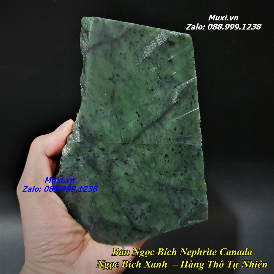Với màu xanh lá cây đặc trưng, loại đá nephrite này thường có lốm đốm các tạp chất sẫm màu bên trong.